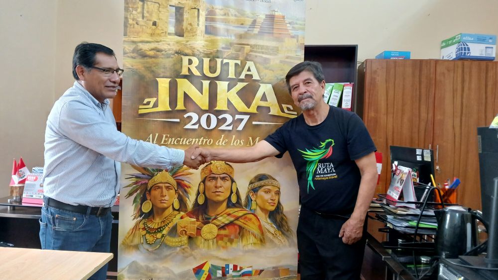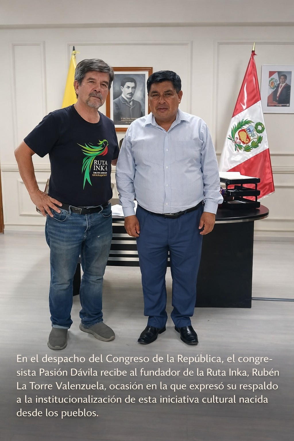 Encuentro en el Consejo Regional de Arequipa: el consejero regional César Huamantuma y Rubén La Torre Valenzuela dialogan sobre la posibilidad de promover una Ordenanza Regional en favor de la Ruta Inka 2027. |